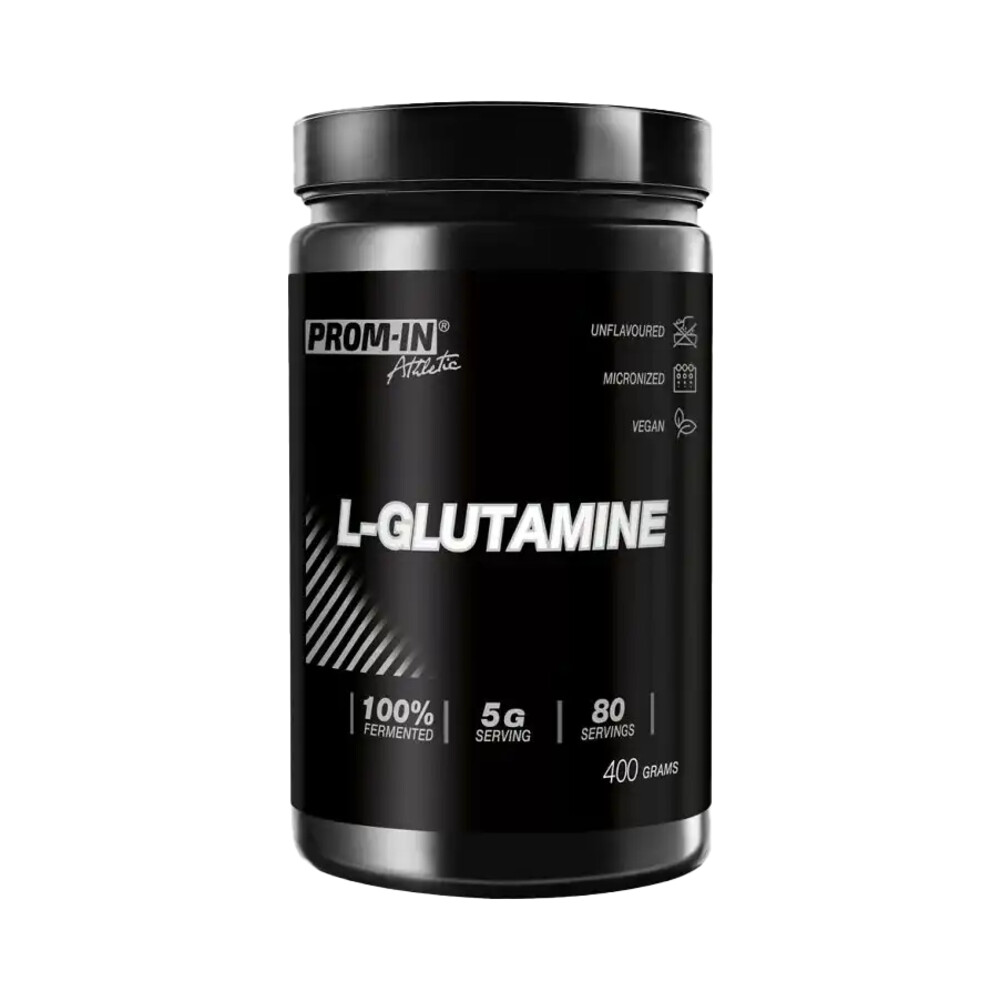 PROM-IN L-Glutamine 400 g to 100% czysta, mikronizowana L-glutamina w proszku, przeznaczona dla sportowców i osób aktywnych fizycznie, które chcą przyspieszyć regenerację, wspierać procesy anaboliczne i skutecznie budować masę mięśniową. L-glutamina to najobficiej występujący aminokwas w organizmie człowieka – stanowi aż 60% aminokwasów obecnych w mięśniach szkieletowych.